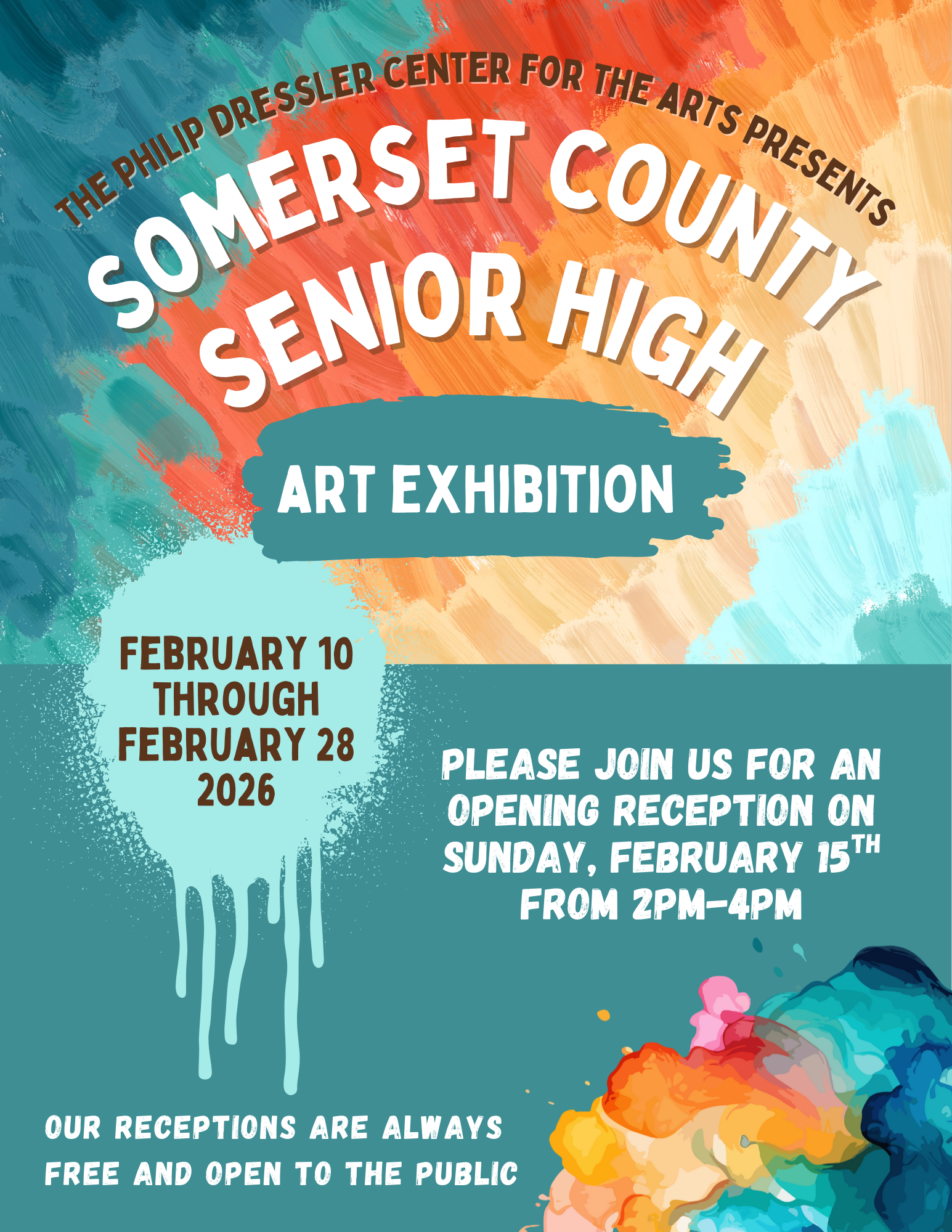 Please join us for the second art show / exhibit of the year, presented by the awesome older artists throughout Somerset County, grades 9-12.